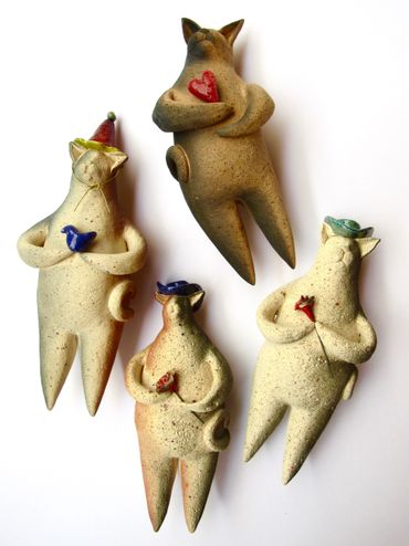 I have created a limited edition of pet sculptures. They are hollow formed, hand-built and are really fun to make. My actual "live" pets are a valuable part of my family, which have inspired these pieces. I have two cats and one dog. Their companionship and unconditional love are a joy for me, as well as for many other animal lovers. I am enjoying the exploration of fun and whimsy in my work. I am excited to see how this path will evolve and transform. I make cats, dogs, and horses. Please email to confirm availability!